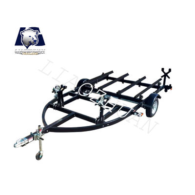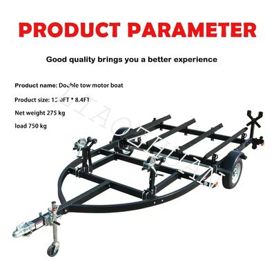 Ontworpen voor motorbootspelers, clubs en watersportbases. Met de gouden afmeting van 4800*2550 mm kan hij voldoen aan de behoeften van het tegelijkertijd slepen van twee boten. Hij is compatibel met reguliere 2-3 persoons motorboten zoals Bombardier en Yamaha. Hij voldoet aan de eisen van naleving, veiligheidsbescherming en gemakkelijke bediening. Het is de voorkeursuitrusting voor transport over korte afstanden en waterreizen. De breedte is 2550 mm, wat de limiet is die door de regelgeving is toegestaan, en de lengte is 4800 mm, wat voldoende laadruimte biedt. Hij is uitgerust met verstelbare houten planken of katrolrails, geschikt voor motorboten van verschillende breedte, en voorkomt krassen op de romp.