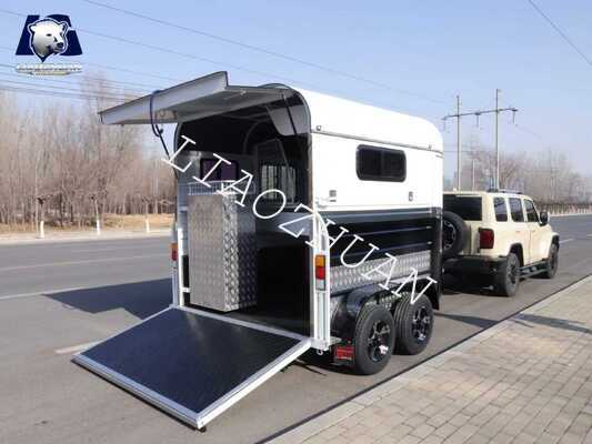 Este reboque premium de 2 cavalos oferece uma solução profissional de transporte de equinos projetada para segurança, durabilidade e conveniência de manuseio.Combina agilidade leve com força pesada para reboque estável em viagens longas.