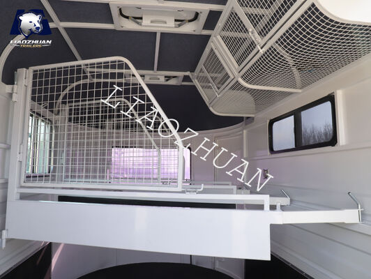 O painel frontal reforçado anti-patadas, o piso de borracha antideslizante e os divisores ajustáveis mantêm os cavalos seguros e estáveis.Carregamento e descarregamento seguros.