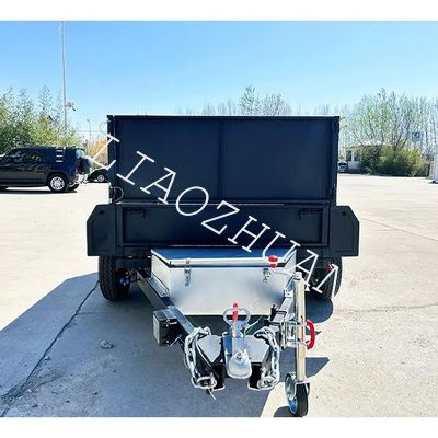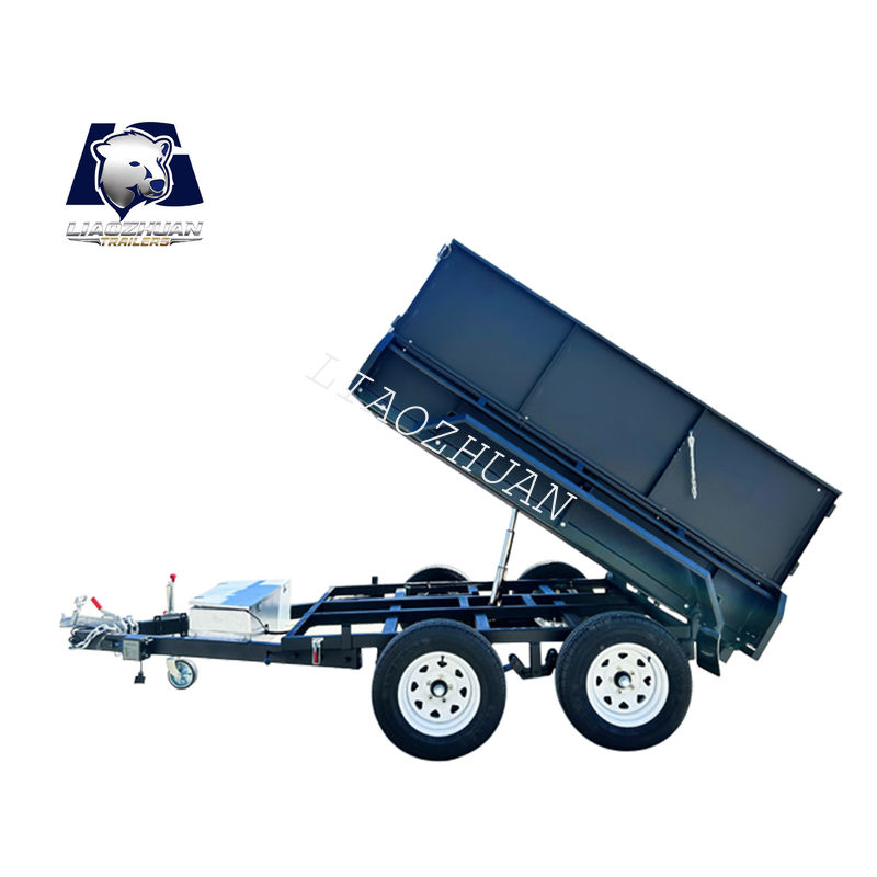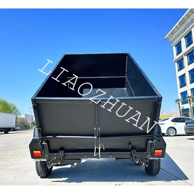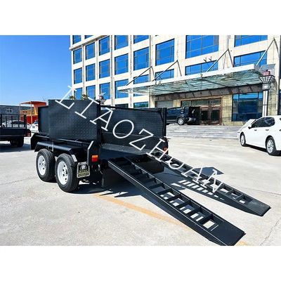 Its main features include high-strength hydraulic cylinders equipped with hydraulic power components, dual 12-inch electric drum brakes, 50 mm square solid shafts, and 8-piece leaf springs to enhance stability and ensure smooth traction. The trailer is also equipped with a 1500 mm tow bar, a grating floor, removable front and rear doors, a tow bar, and a steel toolbox. Optional 600 mm / 900 mm removable cage. It is very suitable for construction, agriculture, animal husbandry and gardening operations.