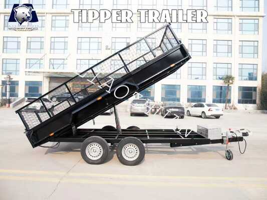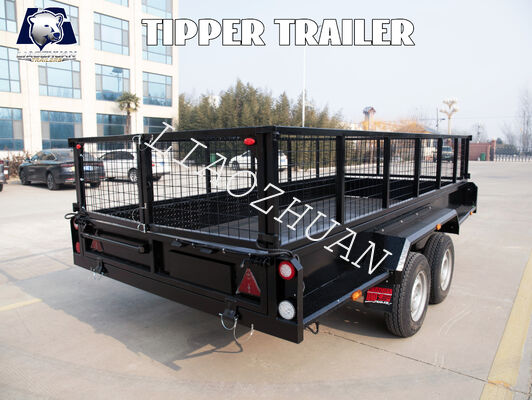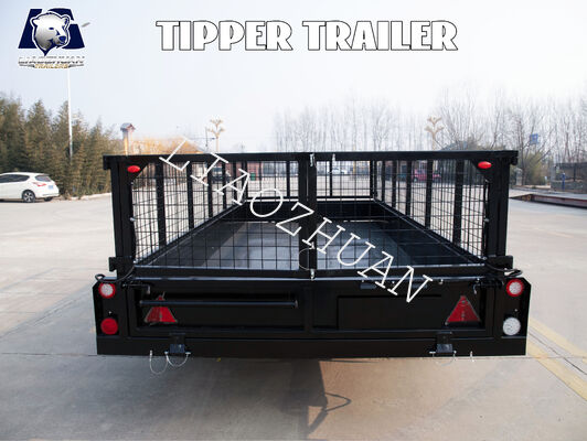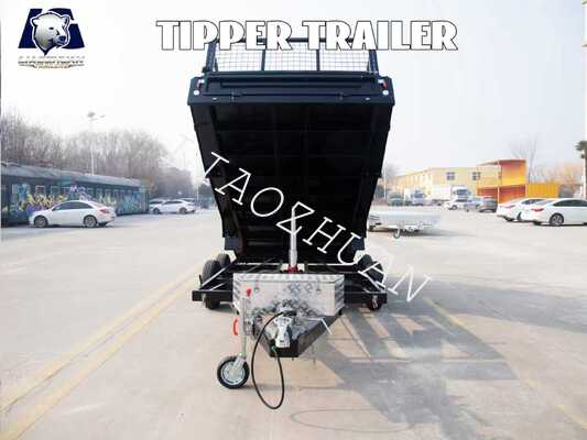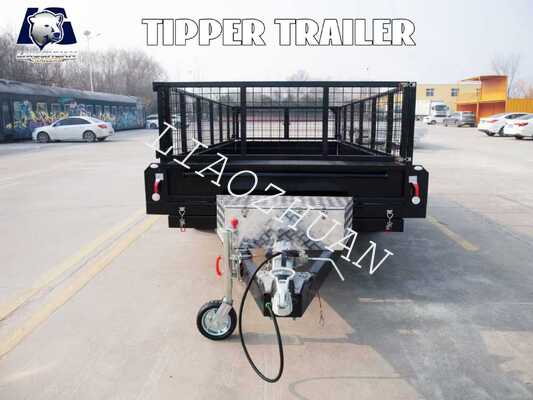 Its core advantage lies in the hydraulic dump system. Driven by a hydraulic cylinder, the cargo box tilts to enable rapid automatic unloading, significantly saving labor costs and operation time. The sides of the cargo box are equipped with high-strength mesh guardrails, effectively preventing cargo from falling during transportation and ensuring driving safety. Additionally, the trailer is fitted with a reliable braking system to further enhance transportation safety.