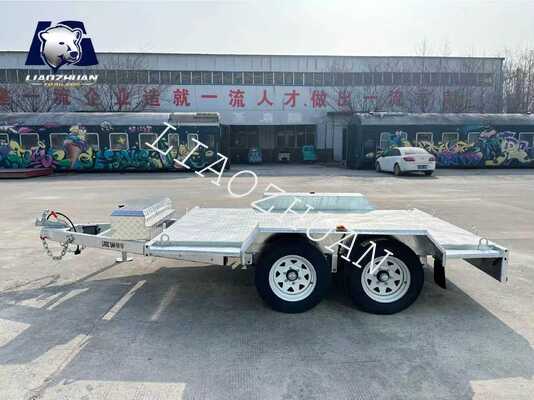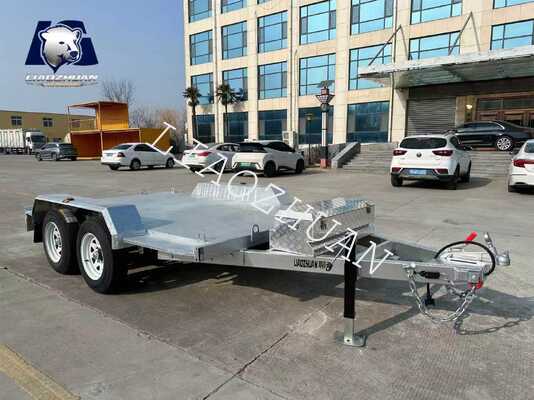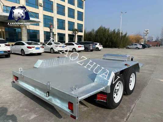 Flatbed Trailer - Heavy Duty Galvanized Steel Transport Trailer With Dual Axles And Safety Chains, Ideal For Equipment, And General Cargo Hauling