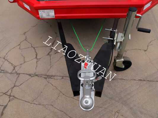 The trailer features a compact design with a trailer ball and coupler at the front for easy vehicle attachment. It is equipped with single-axle dual wheels to enhance driving stability and safety. Reflective strips and warning lights on the sides and rear improve visibility during nighttime operation. The overall construction is lightweight yet exceptionally durable, making it ideal for frequent commercial use.