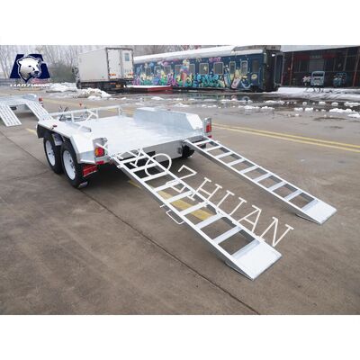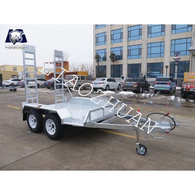 This heavy-duty 8x5 double-axle hot-dip galvanized excavator trailer features a 2000kg Aggregate Trailer Mass (ATM) capacity, specifically engineered for transporting small excavators, agricultural machinery, building materials, and various heavy equipment.